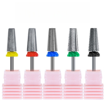 Removedor de esmalte de unha de ouro aço tungstênio Gel prego broca Universal 5-em-1 cabeça plana cônica prego brocas