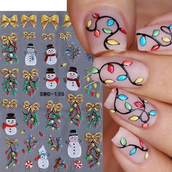 ملصقات أظافر جديدة لعيد الميلاد عيد الميلاد شجرة جرس كرة خفيفة 3D شارات ذاتية اللصق