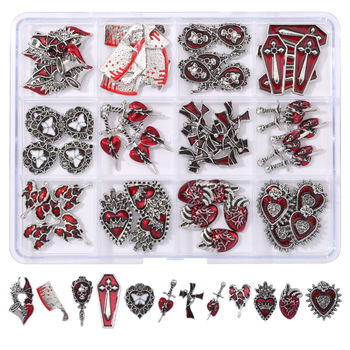 Ücretsiz Logo 12 ızgara/kutu karışık boyutu kırmızı kalp tırnak pullu sevgililer günü için tırnak mücevheri