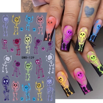 Mới dán móng tay Halloween với phim hoạt hình dễ thương xương sọ 5D dán móng tay tự dính.