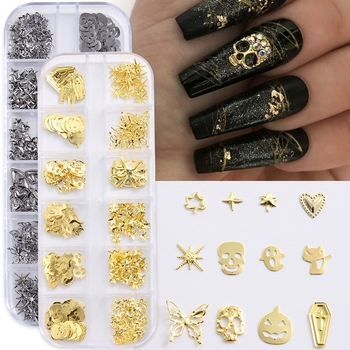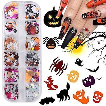 12 Lưới/Hộp Halloween Phim Hoạt Hình Vui Bí Ngô Sọ Ma Hỗn Hợp Sáng Bóng Móng Tay Nghệ Thuật Sequins
